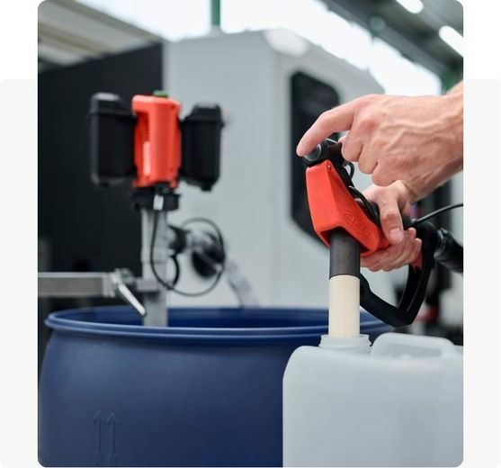 Wenn der integrierte Trockenlaufschutz aktiviert ist, erkennt der FBM 4100 ein leeres Gebinde automatisch und schaltet den Motor ab, bevor Schäden entstehen. Das schützt Ihre Pumpe, spart Energie und sichert den Prozess.