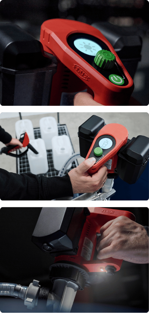 Besser sehen, präziser abfüllen: Die integrierte LED-Leuchte sorgt für klare Sicht auf das Medium – auch bei schlechten Lichtverhältnissen. Ideal für dunkle Räume oder Gebinde.