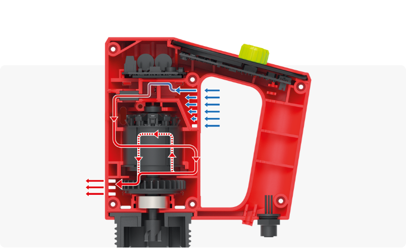 Ideal für Standardanwendungen, bei denen hohe Leistung entscheidend ist. Der Motor wird effektiv gekühlt und bietet dadurch konstant hohe Performance.